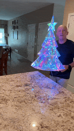 MESMERISING IRIDESCENT GLOW: The LED Christmas tree is covered in iridescent-coloured panels. When lit by the bright white LEDs, the iridescent panels produce beautiful rainbow-like patterns of light. Much like a bubble, they also sparkle and shimmer when viewed at different angles to create an enchanting light display.